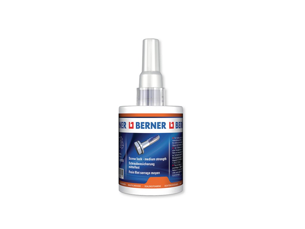 - Berner lepidlo na zajištění šroubových spojů toleruje znečištění průmyslovými oleji. Je nutné pouze vyšroubovat lepící tyčinku